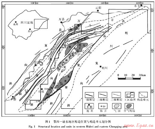 鄂西—渝東地區(qū)位于四川盆地東緣,東起湖北利川,西至重慶萬縣豐都一帶,面積約21000km2(圖1)。構(gòu)造位置處于川東褶皺帶與湘鄂西褶皺帶的結(jié)合部位,包括利川復(fù)向斜、齊岳山復(fù)背斜、石柱復(fù)向斜、方斗山復(fù)背斜和萬縣復(fù)向斜5個二級構(gòu)造單元[4]。