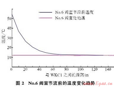 由于距離較遠,輸量較小,管內(nèi)的氣體流速僅為0.70~0.75m/s,導(dǎo)致No.6閥室處管道內(nèi)天然氣節(jié)流前的溫度與地溫基本相同。