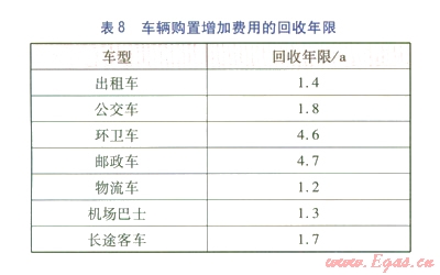 ②根據(jù)油與氣之間的差價(jià),計(jì)算得出車輛購置增加費(fèi)用的回收年限均在