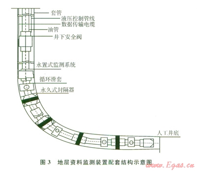 監(jiān)測裝置包括壓力計(jì)托筒、永置式井下溫度-壓力計(jì)、數(shù)據(jù)傳輸電纜及綁扎附件,地面配套數(shù)據(jù)采集與處理系統(tǒng)。
