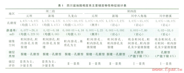 在強(qiáng)烈壓實(shí)、膠結(jié)等作用下,l四川盆地陸相層系各套儲(chǔ)層物性均較差(表1)。但在燕山中晚期,川西和川西北大部地區(qū)連續(xù)沉積了下白堊統(tǒng),部分地區(qū)還沉積了上白堊統(tǒng)、侏羅系及須家河組,砂巖深埋;川中及大川東遭受剝蝕,砂巖埋藏較淺。燕山期剝蝕量:川東北、川東南、鄂西渝東剝蝕厚度介于l500~3500 m,須家河組和侏羅系砂體最大埋深小、壓實(shí)作用相對(duì)較弱、物性相對(duì)好;川西剝蝕厚度小于