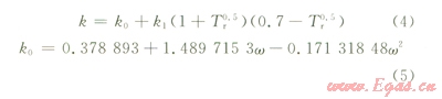 式中Tr=T/Tc,Tc為臨界溫度,K;Tr為絕對溫度和臨界溫度的比值;k可以表示為: