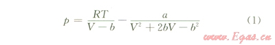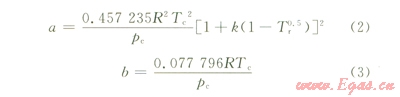 式中p為體系壓力,Pa;V為摩爾體積, m3;T為絕對溫度,K;R為氣體常數(shù),無量綱;a、b可表示為: