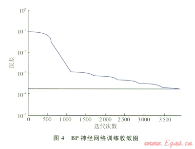 由圖4可知BP神經網絡的收斂性良好,說明程序的下一步預測有效。表3為BP神經網絡預測值與實際值的對比和誤差。
