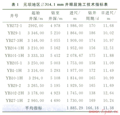 截至2013年4月,除YB27-2井外,中國石化西南油氣分公司在元壩地區(qū)部署的產(chǎn)能建設(shè)井均完成第三次開鉆。從表1中可以看出,采用推薦的技術(shù)集成應(yīng)用后,無論是鉆井周期還是日進尺均優(yōu)于前期施工井。ll口井第三次開鉆平均鉆井時間166.18d,較前期平均值縮短34d。