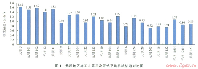 元壩地區(qū)長興組深井在陸相深部地層已應(yīng)用扭力沖擊器17井次,陸相專層井應(yīng)用9井次,平均單趟鉆進尺262.98m,平均機械鉆速2.60m/h。在Æ314.1mm井眼段應(yīng)用進尺3286.39m,平均機械鉆速2.07m/h,單趟鉆進尺l93.32m;應(yīng)用渦輪配合孕鑲金剛石19井次,陸相專層井應(yīng)用7井次,平均單趟鉆進尺208.74m,平均機械鉆速1.37m/h,與自流井組、須家河組平均機械鉆速0.63m/h相比,提高了ll7.46%;應(yīng)用高效PDC鉆頭5井次,同比相鄰井段提速10.22%,單趟鉆進尺提高21.25m。