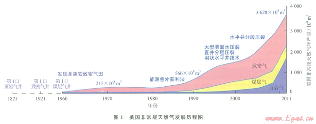 非常規(guī)油氣已成為國(guó)內(nèi)外油氣行業(yè)研究和關(guān)注的熱點(diǎn),中國(guó)石油評(píng)選的“2011年國(guó)際石油十大科技進(jìn)展”中,其中有4項(xiàng)內(nèi)容與非常規(guī)油氣勘探開發(fā)直接相關(guān):①儲(chǔ)層物性納米級(jí)實(shí)驗(yàn)分析技術(shù)投入應(yīng)用,改變了傳統(tǒng)的儲(chǔ)層孑L喉結(jié)構(gòu)表征方法,建立了非常規(guī)儲(chǔ)層性質(zhì)有效評(píng)價(jià)體系,大大拓展了全球油氣勘探領(lǐng)域;②致密油開發(fā)關(guān)鍵技術(shù)突破實(shí)現(xiàn)工業(yè)化生產(chǎn)應(yīng)用,使美國(guó)致密油開發(fā)取得突破,將引領(lǐng)和帶動(dòng)全球致密油勘探開發(fā)進(jìn)程;③綜合地球物理方案提高非常規(guī)油氣勘探開發(fā)效益;④水平井鉆井技術(shù)創(chuàng)新推動(dòng)頁巖氣大規(guī)模開發(fā)[2]。