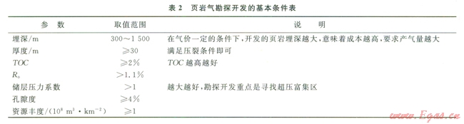 具有勘探開發(fā)價(jià)值的頁巖儲(chǔ)層須滿足表2所示的基本條件。