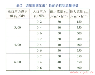 根據(jù)GB 27790-2011《城鎮(zhèn)燃?xì)庹{(diào)壓器》(以下簡稱GB 27790-2011)的規(guī)定,城鎮(zhèn)燃?xì)庹{(diào)壓器靜態(tài)特陛的合格與否需要通過靜態(tài)特性實驗并根據(jù)實驗數(shù)據(jù)繪制靜態(tài)特性曲線圖來判定。對某一型號的城鎮(zhèn)燃?xì)庹{(diào)壓器(標(biāo)稱參數(shù)見表l、2)進(jìn)行靜態(tài)特性實驗,并按照GB 27790-2011第