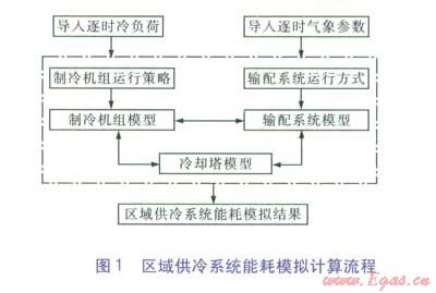 本文結(jié)合工程實例,建立區(qū)域供冷系統(tǒng)能耗模型,基于確定的制冷機組運行策略對不同輸配系統(tǒng)運行方式下的區(qū)域供冷系統(tǒng)的能效進行分析。