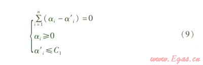 式(7)中的參數(shù)αi,α'i,p通過(guò)解下面的二次優(yōu)化問(wèn)題獲得,優(yōu)化的目標(biāo)函數(shù)為: