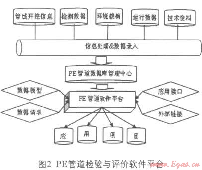 軟件平臺是IT技術(shù)在PE管道檢驗(yàn)與評價(jià)中的應(yīng)用。基于數(shù)據(jù)庫技術(shù)構(gòu)建PE管道信息數(shù)據(jù)庫,有效管理PE管道數(shù)據(jù),從而實(shí)現(xiàn)管道信息共享,并利用信息數(shù)據(jù)庫編制PE管道風(fēng)險(xiǎn)評估系統(tǒng),構(gòu)建以風(fēng)險(xiǎn)檢驗(yàn)為核心的PE燃?xì)夤艿腊踩u價(jià)軟件應(yīng)用平臺。PE管道檢驗(yàn)與評價(jià)軟件平臺如圖2所示。