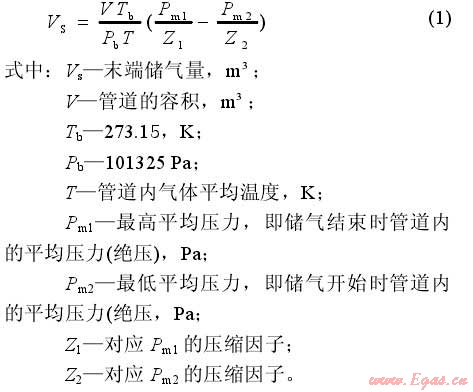 利用高壓、次高壓供氣管道末端儲氣可根據公式(1)計算: