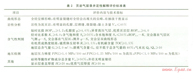 頁巖氣層錄井定性解釋評價標準見表2。