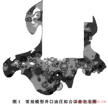 歷史擬合是對(duì)地質(zhì)模型參數(shù)場(chǎng)的修正,也是對(duì)地質(zhì)再認(rèn)識(shí)的過(guò)程。常規(guī)模型歷史擬合調(diào)參前井口油壓擬合較好的井有24口,占所有氣井的比例為18.2%,且多數(shù)井模型計(jì)算壓力較實(shí)際壓力偏高;考慮阻流帶的模型壓力擬合較好的井約有72口,所占比例達(dá)到54.5%,多數(shù)井計(jì)算壓力與實(shí)際壓力更加接近,空間擬合誤差對(duì)比圖見(jiàn)圖1、2。此外,阻流帶的引入還克服了歷史擬合參數(shù)調(diào)整有時(shí)范圍較大、不合理的弊端。Y42-2井試井解釋滲透率為0.4mD,表皮系數(shù)為-5.8,邊界面積1.71km2。常規(guī)模型需要將滲透率減小,油壓才能基本擬合上,且曲線變化趨勢(shì)仍然與實(shí)際存在較大偏差,顯然這種修改是不符合實(shí)際的。引入阻流帶以后,將滲透率減小為原來(lái)的50%,油壓迅速擬合到實(shí)際水平,壓力變化趨勢(shì)與實(shí)際相符(圖3),這也從另一方面證實(shí)了阻流帶的存在。由此可見(jiàn),考慮阻流帶之后歷史擬合工作變得更加容易,部分井甚至不需要調(diào)參即可完成擬合,進(jìn)一步證實(shí)了阻流帶模型的可靠性。值得注意的是:并不是所以井之間都存在阻流帶,還應(yīng)結(jié)合井間干擾分析成果,對(duì)部分井間連通區(qū)域進(jìn)行修改。通過(guò)反復(fù)修改參數(shù)場(chǎng),對(duì)每口井進(jìn)行了壓力和產(chǎn)水的擬合,得到模型最終計(jì)算儲(chǔ)量710.9×108m3,與地質(zhì)儲(chǔ)量719.21×108m3相差不大,誤差在5%以?xún)?nèi),認(rèn)為修正后的模型能夠基本代表氣藏實(shí)際[8]。