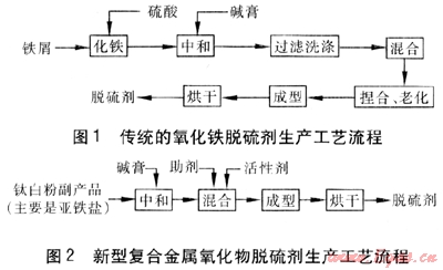 傳統(tǒng)的常溫氧化鐵脫硫劑的主要成分是水合氧化鐵,而水合氧化鐵的生產(chǎn)工藝極其復(fù)雜和繁瑣,在反應(yīng)、萃取、過濾等過程中產(chǎn)生大量硫酸廢水,污染環(huán)境,因此,此法生產(chǎn)的脫硫劑水合氧化鐵含量雖較高,但成本也較高,也不環(huán)保。