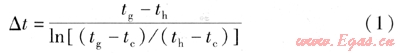式中△t——計(jì)算對(duì)數(shù)溫差,℃
