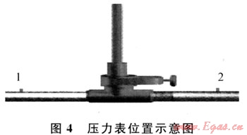 具體試驗(yàn)步驟:選擇空曠場(chǎng)地,搭建試驗(yàn)平臺(tái);剝防腐層,除去管線表面油污、底漆;測(cè)量管線橢圓度,保證封堵點(diǎn)位置橢圓度不超過(guò)1%;測(cè)量管線壁厚,盡量避開(kāi)嚴(yán)重腐蝕區(qū)域;選擇合適點(diǎn),焊接封堵三通、注氮短節(jié)、平衡短節(jié)以及管線封頭;對(duì)焊道進(jìn)行滲透探傷檢查;安裝夾板閥、球閥,壓力表位置安裝示意圖見(jiàn)圖4,從口2注入氮?dú)?,壓力?.0MPa;安裝1200H開(kāi)孔機(jī)和T101型開(kāi)孔機(jī),開(kāi)DN600mm封堵孔和2號(hào)平衡孔;調(diào)試、安裝封堵器,進(jìn)行封堵操作,封堵操作時(shí)先壓力平衡后方可進(jìn)行下一步的操作;經(jīng)測(cè)量和計(jì)算,封堵尺寸下到位后,打開(kāi)2號(hào)球閥放空氣體;使用火焰切割設(shè)備,切開(kāi)2號(hào)球閥一側(cè)封頭,向管道內(nèi)安裝氣囊并給氣囊充氣;觀察1號(hào)位置處短節(jié)上的壓力表看壓力是否變化,用肥皂水噴氣囊貼管內(nèi)壁處,若壓力表無(wú)變化,氣囊貼管壁處無(wú)氣泡則封堵成功,否則封堵視為不成功,此時(shí)應(yīng)分析封堵不成功的原因,并有針對(duì)性地提出解決問(wèn)題的措施,直到封堵成功為止。封堵試驗(yàn)完成后,對(duì)1號(hào)位置處進(jìn)行泄壓;拆卸封堵設(shè)備和焊接在試驗(yàn)管道上的三通等機(jī)具、器材,并將它們擺放就位。