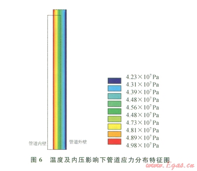 2 內(nèi)外壓及熱應力影響下管道的應力應變分布