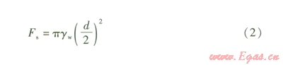 方案二:聚乙烯管埋設于海底。管道抗漂浮計算公式如下[1]: