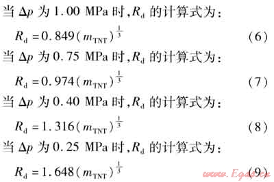 式中△p——沖擊波超壓,MPa