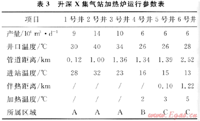 以升深X集氣站為例進(jìn)行優(yōu)化前后投資對比分析。該站有6口井,采氣管道為7.851km,設(shè)計(jì)壓力均為29MPa,若采用井下節(jié)流技術(shù),井口壓力降為7.0MPa,計(jì)算得到該集氣站加熱爐運(yùn)行參數(shù)見表3。
