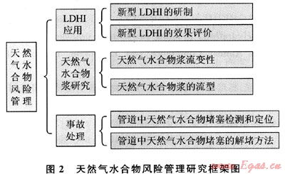 值得高興的是針對(duì)上述2個(gè)方面的問(wèn)題,研究人員正在全力解決。目前越來(lái)越多的LDHI正被研制出來(lái)[11],國(guó)外已經(jīng)有很多油氣田在試驗(yàn)這些新的抑制劑。與此同時(shí),針對(duì)含天然氣水合物的油氣混合物漿的流動(dòng)特性及堵塞特性的研究也在全世界如火如茶地展開(kāi)。目前天然氣水合物風(fēng)險(xiǎn)管理的研究框架如圖2所示,目的就是為石油天然氣工業(yè)提供經(jīng)濟(jì)安全的油氣輸送方案[12~19]。