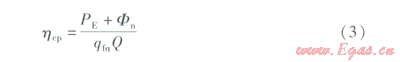 聯(lián)合循環(huán)發(fā)電系統(tǒng)總效率hcp的計算式為: