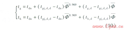 設(shè)計(jì)工況下,盤管內(nèi)熱水平均溫度tpj,w,d的計(jì)算式為: