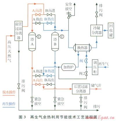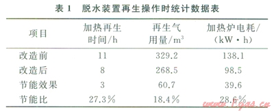 1)應(yīng)用再生氣余熱利用的節(jié)能技術(shù)提高了加熱爐的進氣溫度,減少了加熱時間和電耗量,降低了脫水裝置的能耗,技術(shù)上可行。