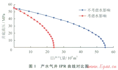 由圖l可以看出,不考慮水影響時(shí)計(jì)算的無阻流量要遠(yuǎn)遠(yuǎn)大于考慮水影響時(shí)計(jì)算所得的無阻流量。根據(jù)單相氣流的滲流理論與氣水兩相的滲流理論分析可知,此計(jì)算結(jié)果是可信的。這也表明氣井的產(chǎn)水將大大地降低氣井的產(chǎn)能。