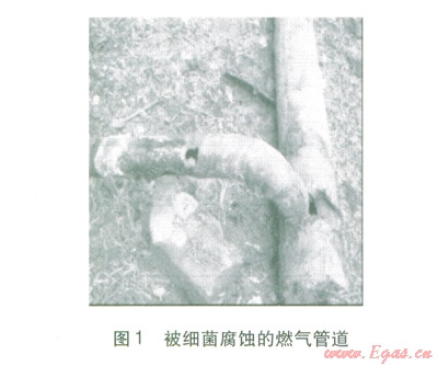 細菌腐蝕幾乎在土壤中均可發(fā)生,發(fā)生腐蝕后的管道表面有黃色或黑色的質(zhì)地疏松的銹層,創(chuàng)面邊緣不整齊,清除腐蝕產(chǎn)物后創(chuàng)面較粗糙。可根據(jù)腐蝕創(chuàng)面選擇尺寸合適的補件焊接修復(fù),但需注意腐蝕點周圍管材的腐蝕情況,避免因管壁過薄導(dǎo)致焊穿造成漏氣。如果腐蝕區(qū)域較大,則只能采取更換管段的修復(fù)方式。圖l為某搶修現(xiàn)場被細菌腐蝕的燃氣管道。