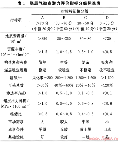 煤層氣含氣區(qū)勘查潛力綜合評(píng)價(jià)是煤層氣勘探研究最基礎(chǔ)的工作。20世紀(jì)80年代開始,有關(guān)科研部門及生產(chǎn)單位在煤層氣資源及勘查潛力評(píng)價(jià)方面做了大量研究工作[1~11],對(duì)中國(guó)埋深2000m以淺的煤層氣資源量及勘查潛力進(jìn)行了不同程度的評(píng)價(jià)和預(yù)測(cè)。研究領(lǐng)域主要集中于評(píng)價(jià)參數(shù)的選取、評(píng)價(jià)方法的引入,研究對(duì)象為全國(guó)主要的含氣區(qū)帶、含氣盆地,或集中于某個(gè)區(qū)域、某幾個(gè)礦區(qū)規(guī)模,研究?jī)?nèi)容以對(duì)煤層氣資源評(píng)價(jià)為主。之前,由于獲取的煤層氣開發(fā)數(shù)據(jù)資料有限,很難對(duì)一個(gè)區(qū)域進(jìn)行資源量與可采性并重的勘查潛力研究。