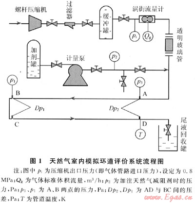 根據(jù)對天然氣管輸減阻劑性質(zhì)及作用機理的研究,設計了天然氣室內(nèi)模擬環(huán)道評價系統(tǒng),如圖1所示。