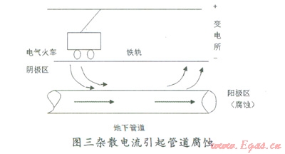 2)雜散電流。所謂雜散電流是指沿規(guī)定回流以外流動的電流。雜散電流流出的地方成為腐蝕電池的陽極區(qū),腐蝕破壞就發(fā)生在這個地方,金屬損失量與流過的雜散電流的電量成正比,符合法拉第定律,即一安培電流流過一年就相當于約九公斤的鐵發(fā)生電化學腐蝕而溶解掉了,可見雜散電流引起的腐蝕是相當嚴重的。