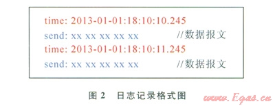 保存日志的命名規(guī)則為日期+鏈路名稱的組合,如“20130101_測(cè)試站.log”,日志記錄的格式如圖2所示。