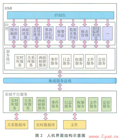 3)服務接口層提供了各類應用與后臺服務交互的接口,主要包括實時庫接口、關(guān)系庫接畫面刷新服務接口、事件服務接口、權(quán)限服務接口、文件服務接口等。服務接口層實現(xiàn)了應用對服務的透明性訪問。