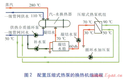 配置壓縮式熱泵的換熱機組流程見圖2。