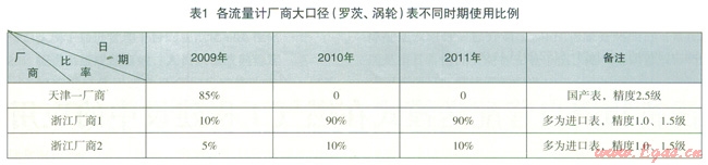 (2)在流量計(jì)的的生命周期管理中對(duì)于已經(jīng)老化影響到表具正常運(yùn)行和計(jì)量的必須進(jìn)行必要的改造和更換,以保證其生命力。合肥燃?xì)夤ど逃脩?span lang="EN-US">2009年前使用的多為國(guó)產(chǎn)系列的流量計(jì),在2006年前還大量使用了精度為2.5級(jí)流量計(jì),計(jì)量誤差大,穩(wěn)定性差,且使用的故障率高,降低了表具的計(jì)量精度,影響到供銷差率的控制。針對(duì)這種情況,合肥燃?xì)饷磕晗聯(lián)軐m?xiàng)資金組織人員有重點(diǎn)對(duì)老舊表具進(jìn)行改造,一是對(duì)2.5級(jí)表進(jìn)行更換成1.5級(jí)~l.0級(jí)表,二是根據(jù)用戶現(xiàn)有灶具用量進(jìn)行測(cè)算對(duì)DN50、DN80表流量范圍進(jìn)行重新界定,更換成流量范同更適合的表具或選擇口徑小一級(jí)的表具進(jìn)行計(jì)量。見(jiàn)表l、表2。