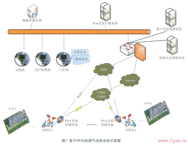 摘 要:本文描述了一種基于RFID技術(shù)的燃?xì)獍矙z管理系統(tǒng)。系統(tǒng)采用將RFID標(biāo)簽張貼于氣表表面(舊表)或內(nèi)置于氣表內(nèi)(新表)的方法,>RRFID標(biāo)簽唯一標(biāo)識(shí)氣表。安檢時(shí),安檢人員必須入戶掃描RFID標(biāo)簽以得到氣表編號(hào),以此方法確保安檢人員真正入戶,達(dá)到精細(xì)化管理的目的。系統(tǒng)具有安檢計(jì)劃管理、安檢管理、復(fù)查管理、抽查管理、預(yù)約管理、預(yù)警報(bào)警和應(yīng)急派工等功能。