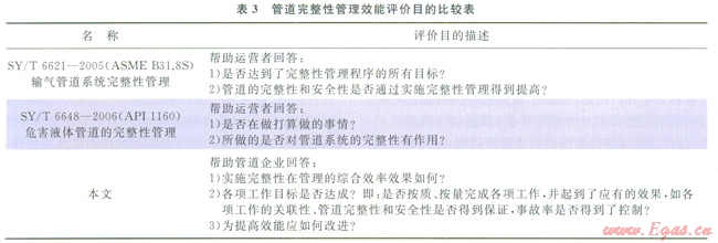 由于管道完整性管理的概念引入較晚,目前國內(nèi)法規(guī)還沒有針對(duì)管道完整性管理效能評(píng)價(jià)的相關(guān)要求。目前國內(nèi)主要遵照?qǐng)?zhí)行是將ASME B31.8S及API ll60等同采納而轉(zhuǎn)標(biāo)的2個(gè)推薦性行、世標(biāo)準(zhǔn),即《SY/T 6621—2005輸氣管道系統(tǒng)的完整性管理》及《SY/T 6648—2006危險(xiǎn)液體管道的完整性管理》,其中對(duì)于效能評(píng)價(jià)的相關(guān)要求與ASME B31.8S和API 1160的內(nèi)容一致。