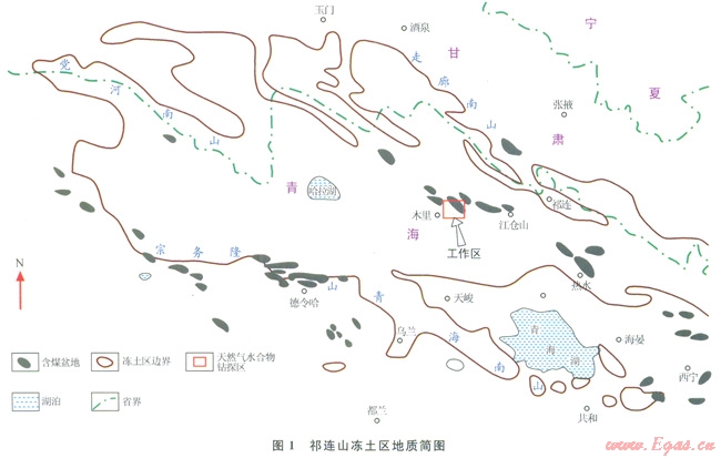 祁連山凍土區(qū)地處青藏高原北緣,多年凍土面積約為l0×104km2[22]。早燕山運動使得祁連山地區(qū)局部拉張,形成一系列條帶狀的山間斷陷盆地,沉積一套侏羅系的河湖沼澤相含煤巖系[23],造成祁連山侏羅紀小型含煤盆地星羅棋布,組成祁連山含煤盆地群,其中疏勒河 大通河流域就分布有木里、瓦烏寺、雪霍立等11個含煤盆地(圖1)。