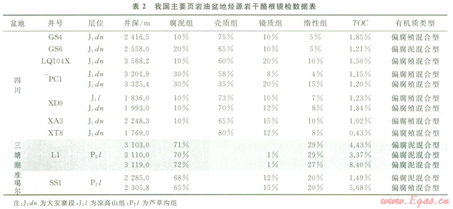 藻類勃發(fā)就是浮游藻類在一定條件和時期形成單屬種的極度生長和富集,具有強烈的排他性。浮游藻類分布極其廣泛,地球表面只要有水的地方,一般都有其蹤跡。藻類勃發(fā)在現(xiàn)代海洋和湖泊往往呈現(xiàn)季節(jié)性,主要類型為硅藻、顆石藻和溝鞭藻等[20]。影響藻類勃發(fā)的因素主要有光照、水溫、營養(yǎng)鹽供給、pH值和溶解氧等,其中前3個因素最為重要[21-23]。藻類勃發(fā)能在短時間內(nèi)產(chǎn)生大量有機質(zhì)聚集,具有極高的生產(chǎn)力,其直接后果是形成藻類沉積紋層。我國主要優(yōu)質(zhì)烴源巖均發(fā)現(xiàn)藻類富集,如渤海灣盆地古近系沙河街組油頁巖中保存有大量層狀藻類體、結(jié)構(gòu)藻類體和藻屑體,且地球化學分析表明藻類是原油的直接來源[24];鄂爾多斯盆地上三疊統(tǒng)長7段油頁巖的有機質(zhì)來源以藻類為主,陸源高等植物等貢獻十分有限[25];松遼盆地上白堊統(tǒng)青一段湖相富有機質(zhì)泥頁巖以藻類為有機質(zhì)主要來源[26];四川盆地下志留統(tǒng)龍馬溪組產(chǎn)氣頁巖也以藻類為主要生烴來源。筆者等對我國主要致密油產(chǎn)層的烴源巖進行了取樣分析,發(fā)現(xiàn)致密油普遍高產(chǎn)的準噶爾和三塘湖盆地的蘆草溝組烴源巖有機質(zhì)類型以偏腐泥混合型為主,藻類占主導(dǎo)的腐泥組含量較高,一般大于65%;而致密油普遍低產(chǎn)的四川盆地下侏羅統(tǒng)烴源巖有機質(zhì)類型以偏腐殖混合型為主,腐泥組含量偏低,一般小于30%(表2)。