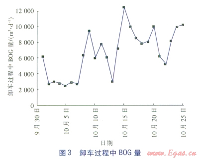 西部站自2011年l2月28日投入運(yùn)行以來,運(yùn)行正常。下面結(jié)合實(shí)際生產(chǎn)過程中的BOG數(shù)據(jù),對(duì)日常運(yùn)行以及卸車過程中產(chǎn)生的BOG量進(jìn)行分析。