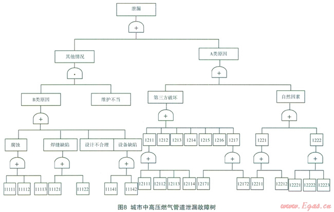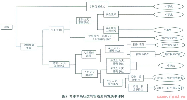 本文搜集了近年來(lái)百余例城市中高壓燃?xì)夤艿佬孤┦鹿剩檬录?shù)的方法分析了城市中高壓燃?xì)夤艿腊l(fā)生泄漏后事故發(fā)展場(chǎng)景,利用故障樹(shù)分析方法對(duì)城市中高壓燃?xì)夤艿罏?zāi)害性事故原因,以及城市燃?xì)夤艿朗鹿实慕禐?zāi)因素進(jìn)行了分析,提出了城市中高壓燃?xì)夤艿里L(fēng)險(xiǎn)分析中降災(zāi)因子模型。