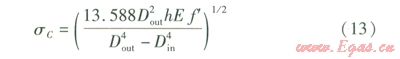 忽略由熱脹冷縮產(chǎn)生的二次應力,彎曲變形管段的穩(wěn)定性判別式為: