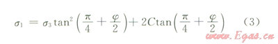 認為井壁巖石的剪切破壞服從Mohr Coulumb強度準則,當井壁上的最大和最小有效主應力構成的莫爾圓突破巖石破壞強度時,井壁巖石就發(fā)生剪切破壞。用主應力表示的Mohr Coulumb強度準則為[25]: