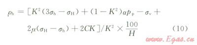 安全鉆井液密度窗口的上限,即地層破裂壓力當量密度(rf)必須保證井壁不發(fā)生任何形式的破裂,應當取ra、rb和rx三者的最小值,即: