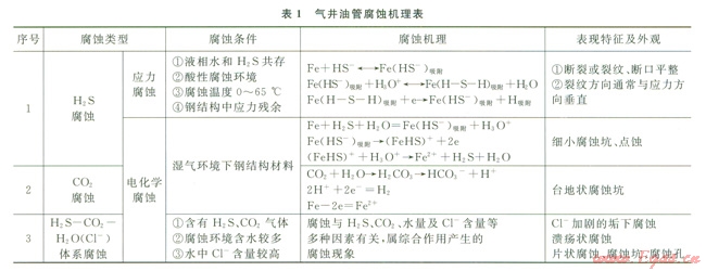 氣井大修過程中起m油管腐蝕檢測及分析結果表明,靖邊氣田氣井油管電化學腐蝕與應力腐蝕同時存在,但主要發(fā)生由H2S—CO2—H2O(C1—)體系引起的電化學腐蝕[2],見表1。