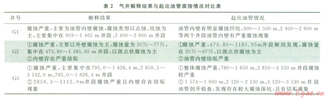 結合氣井更換油管作業(yè),將3口氣井起出油管的腐蝕情況與測井解釋結果進行對比,結果見表2。